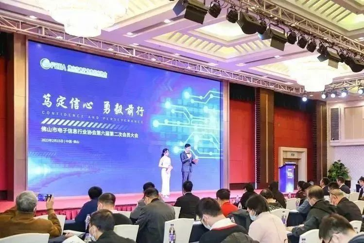 2月15日下午,佛山市电子信息行业协会召开第六届第二次会员大会,大会以“笃定信心,勇毅前行”为主题,佛山市科技局、佛山市工业和信息化局、佛山市商务局、佛山市科学技术协会、中国机电产品进出口商会等单位的领导嘉宾、省、市、区友好商协会代表及会员企业代表近两百人出席大会。