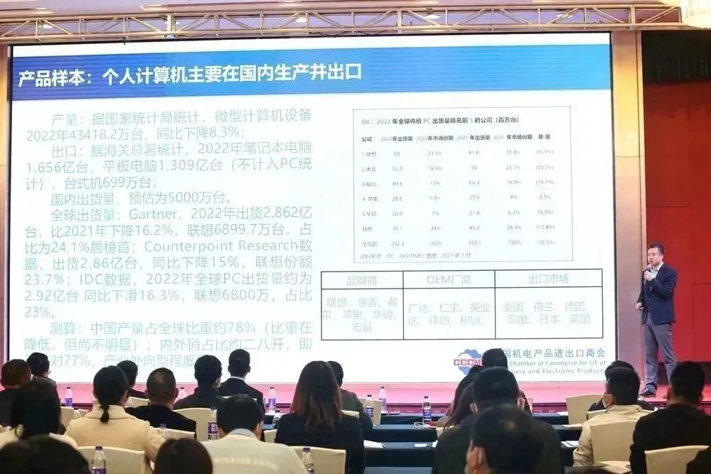 ▲ 中国机电产品进出口商会行业发展部总监、电子信息产品分会秘书长高士旺作专题分享